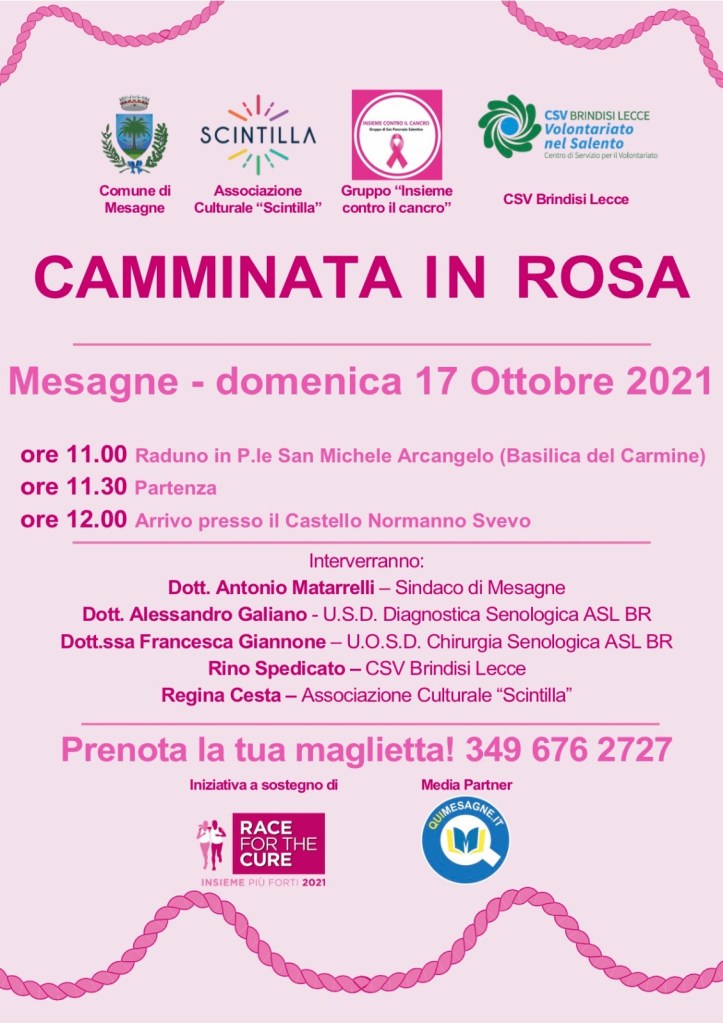 Nell’ambito delle iniziative dell’ottobre rosa, l’Andos segnala questi due eventi a sostegno della Race for the cure – Susan Komen. Si terranno sabato 16 ottobre a Brindisi e domenica 17 ottobre a Mesagne . Per informazioni e prenotazioni trovate i numeri nelle locandine