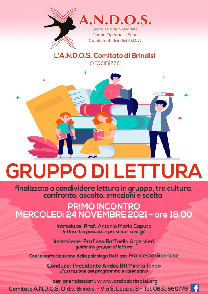 finalizzato a condividere lettura in gruppo, tra cultura,confronto ascolto, emozioni a scelta. Il primo incontro vedrà la partecipazione del prof. Antonio Mario Caputo, letture fra passato e presente, consigli di lettura.