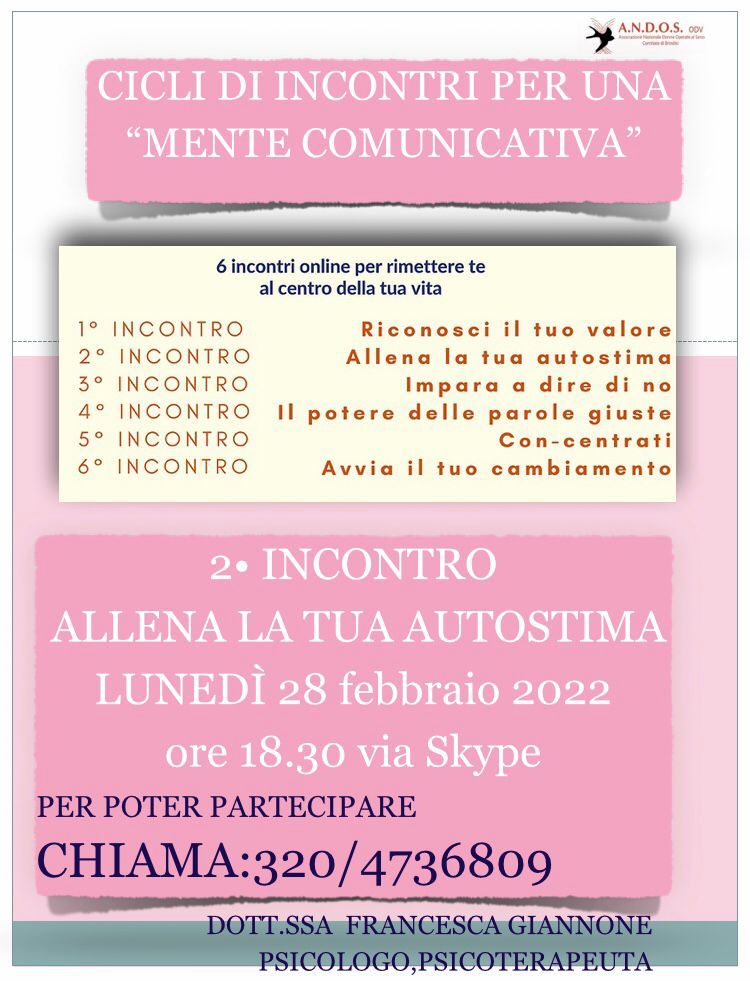 Al via un ciclo di incontri guidati dalla psiconcologa dott.ssa Francesca Giannone per sviluppare una mente comunicativa.
