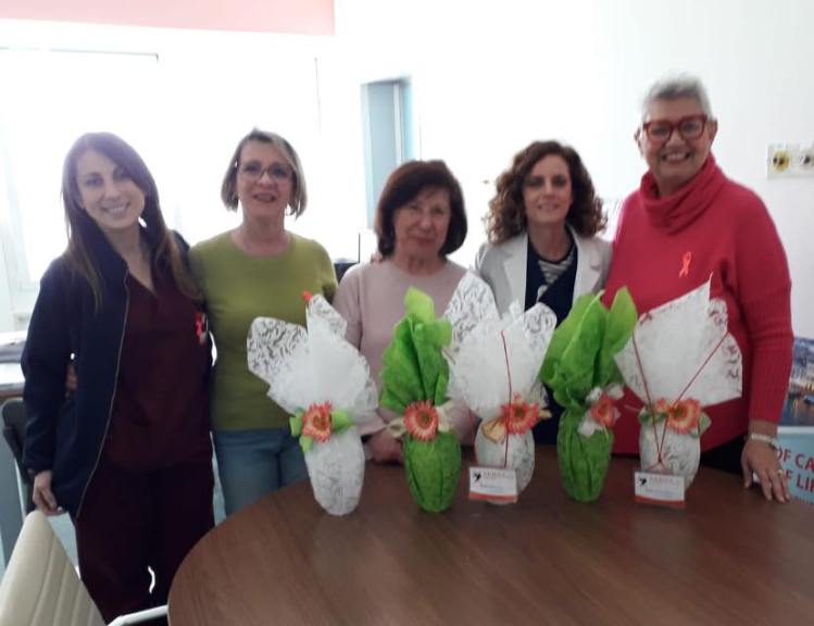 le socie volontarie che hanno fatto visita alle donne in reparto di chirurgia senologica presso l’Ospedale Perrino di Brindisi, direttore dott. S.Burlizzi.
